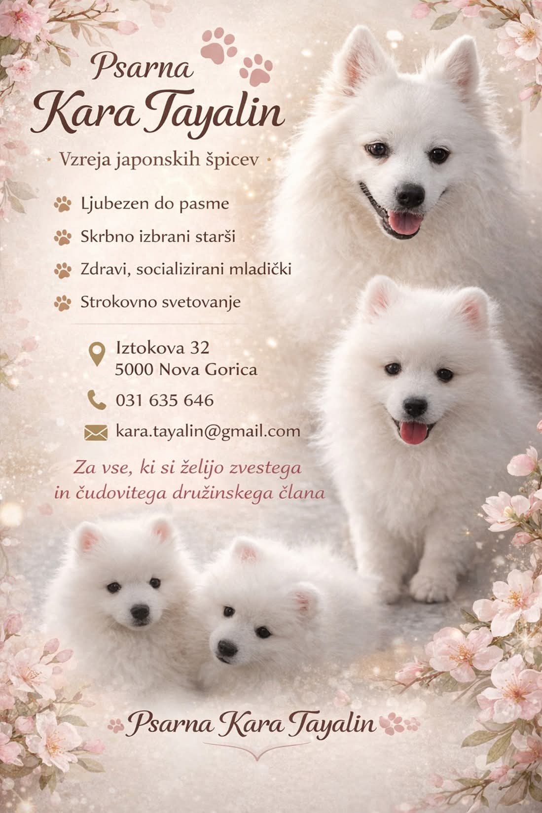Na voljo sta dve čudoviti samički japonskega špica, ki iščeta ljubeč in odgovoren nov dom. Mladički prihajajo iz vrhunske vzreje, starši so odličnega porekla, zdravi in z značilnim prijaznim temperamentom te pasme.